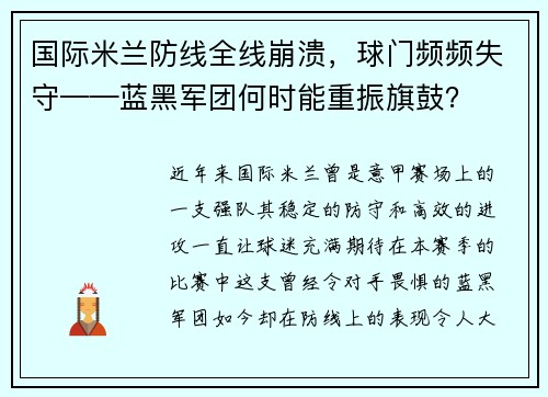 国际米兰防线全线崩溃,球门频频失守——蓝黑军团何时能重振旗鼓?